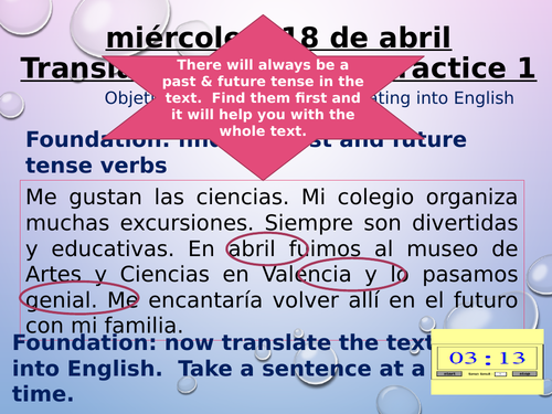 Gcse Spanish Translation Practice Homework Cover Work Revision Teaching Resources