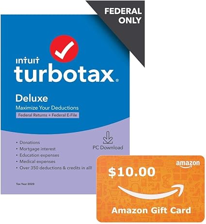 Amazon Com Turbotax Deluxe 2020 10 Amazon Gift Card Bundle Desktop Tax Software Federal Returns Only Federal E File Amazon Exclusive Pc Download