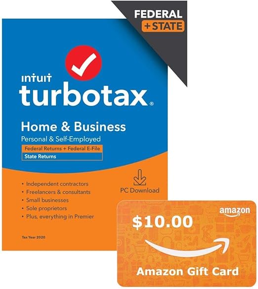 Amazon Com Turbotax Home Business 2020 10 Amazon Gift Card Bundle Desktop Tax Software Federal And State Returns Federal E File State E File Additional Amazon Exclusive Pc Download